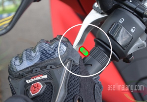 Iya, karena bila hanya sambil menekan tuas rem depan/kanan, dipastikan motor nggak akan  bisa dinyalakan. Kenapa begini? Usut punya usut, ini merupakan salah satu fitur keamanan. Dengan harus menekan tuas rem kiri, dipastikan bahwa kedua tangan pengendara sudah berada pada posisi memegang setang. Dengan  posisi siap berkendara ini, refleks pengendara akan jauh lebih baik dan siap, sehingga bila motor menyala, bisa langsung stabil dan berjalan. Makanya, sistem switch terpasang di tuas rem  belakang alias tuas rem kiri