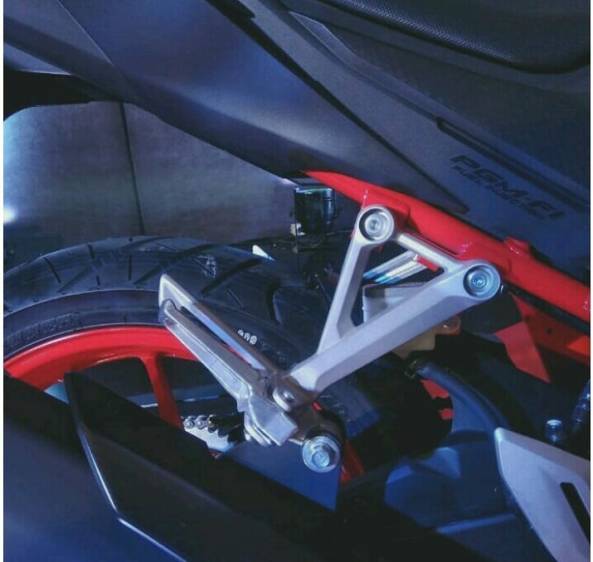 Footstep pembonceng alias bagian belakang, punya desain beda dan berbahan alumunium. Selain lebih ringan secara kasat mata, memang kelir alumunium punya tampilan gahar dan kokoh.