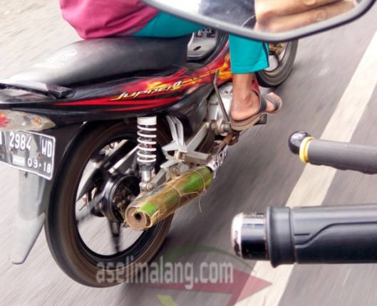 Sang bapak pengendara JupiZ ini, memasang pelepah pohon pisang (gedebog) pada bagian knalpot, tepat pada posisi covernya.