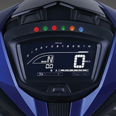 Penampakan panel dasbor terbaru dengan LCD, selain menyajikan tampilan wah dengan model negative juga terbilang komplit. Beragam indikator tertata rapi, mulai lampu-lampu, penunjuk kecepatan, putaran mesin, indikator BBM, temperatur hingga indikator injeksi.