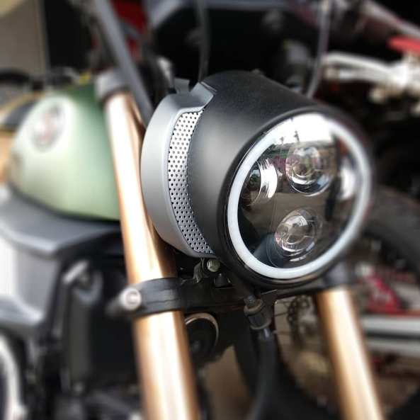 Ciri khas Grom Scrambler yaitu lampu depan bulat retro, muncul kuat di Z125 ini berkat penggunaan headlamp terkini berngaran daymaker LED dengan ukuran rada kecil ketimbang versi umumnya. Menyesuaikan dengan fisik Z125 yang imut, cocok bangets.