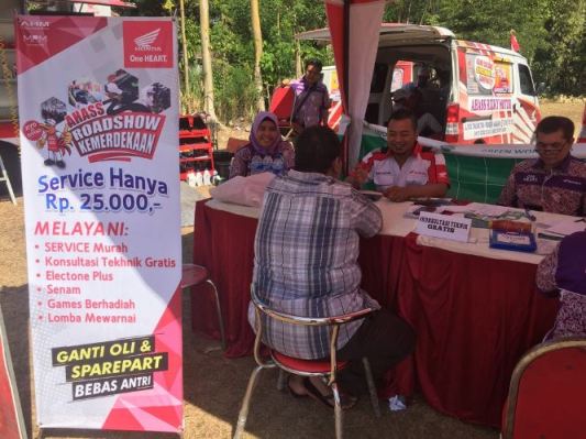 Pada AHASS Roadshow Kemerdekaan ini warga sekitar lokasi dapat menikmati berbagai layanan dan hiburan. Layanan yang diberikan berupa layanan service lengkap berbanderol IDR 25.000 ini meliputi 15 poin yaitu bersihkan karburator, cek karburator, bersihkan saringan udara , ganti oli, bersihkan busi, Setel rem depan dan belakang , periksa dan tambah air aki , periksa lampu dan klakson, setel dan lumasi kabel gas setel dan lumasi rantai roda , periksa dan stel stang kemudi , kencangkan mur dan baut, periksa roda dan ban , setel klep dan setel kopling. Selain service lengkap juga ada konsultasi gratis mengenai kondisi sepeda motor Honda.