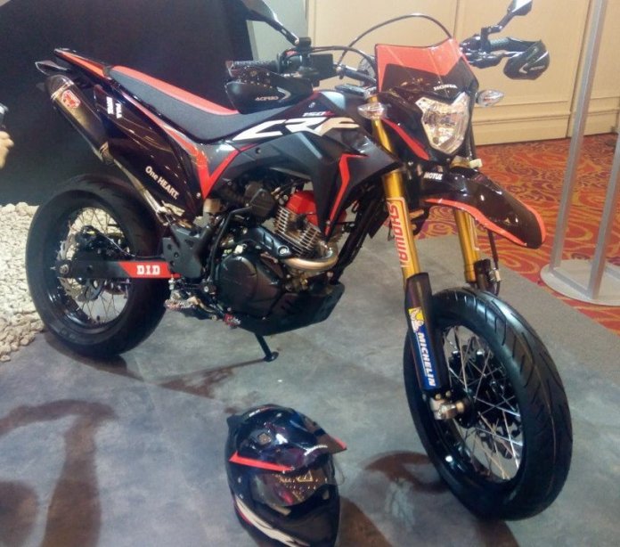 Banyak yang berharap nggak hanya sekedar minor facelift, tapi beneran varian baru, misalnya supermoto. Kan asyik tuh, versi ban kasar ada ban halus juga ada. Maksudnya offroad ada, onroad juga tersedia. Yang muncul adalah, Honda CRF150L kelir baru, hitam.