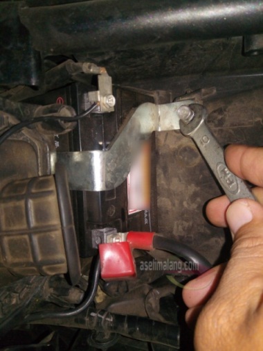 Bisa dikerjakan alias dipasang sendiri dengan mudah, hanya berbekal obeng plus/minus dan kunci pas/ring 10. Langkahnya, jelas, buka jok terlebih dahulu karena posisi aki ada di bawah jok. Lanjut, melepas kabel pada terminal negatif terlebih dahulu, baru disusul mencopot terminal positifnya. Biasakan melepas terminal negatif alias minus dulu ya masbro, untuk menghindari konslet alias hubung singkat, meskipun untuk keamanan, pabrikan Honda sudah melengkapi bagian rangka logam di area tempat aki dengan karet. Lanjut dengan membuka baut pengunci aki menggunakan kunci ring berukuran 10mm.