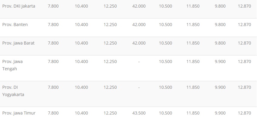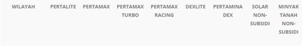 Berikut daftar resmi harga BBM per 10 Oktober 2018, untuk pulau Jawa meliputi provinsi DKI Jakarta, Banten, Jawa Barat, Jawa Tengah,  Daerah Istimewa Yogyakarta dan Jawa Timur