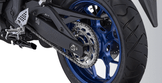 Sisi roda, ukuran baik velg maupun ban, nggak ada perbedaan dengan R25 sebelumnya. Yaiitu roda depan menggunakan velg 2.75 inchi lalu dipasangkan ban ukuran 110/70-17 sementara di roda belakang pakai velg lebar ukuran 4.0 inchi dibalut ban 140/70-17.