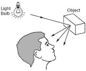 Apa efeknya bila benda sedikit memantulkan cahaya, atau malah tidak memantulkan cahaya? Jelas, benda itu tidak bisa terlihat. akan saia tunjukkan melalui gambar berikut