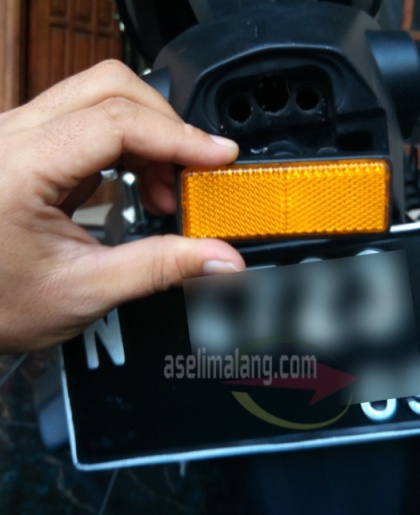 Pada paham kan benda yang namanya ‘mata kucing’? Benda kecil dengan beberapa macam variasi bentuk, yang berfungsi sebagai perangkat keamanan, sebagai pemantul cahaya. Ada yang bilang mata kucing, ada juga yang bilang reflektor. Kalau reflektor sih, saia rasa kurang pas ya, karena reflektor relevan dengan lampu depan. Mata kucing ini, paling sering berkelir merah dan terdapat di sisi belakang motor.