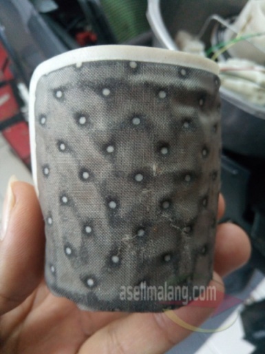 Hmm..performa si bleki kembali standar sehat nih, di kisaran angka 16 HP. Sempat diuji jalan juga, dan sip. Malah saia dipersilahkan jajal sejenak juga, secara si pemilik kan lebih hafal kondisi motor, hehehehe. Tarikan nggak lagi berat seperti saat datang ke bengkel tadi, dan salah satu penyebab adalah kotornya filter BBM tadi. Manuver juga oke, sudah enteng dan pas, tak terasa berat setang saat diajak belok.