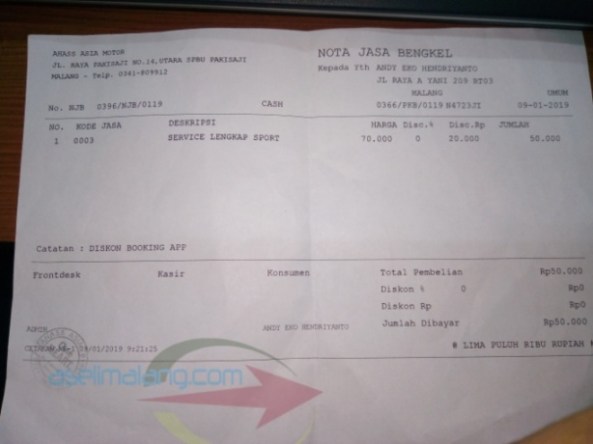 Karena saat melakukan service ini saia booking melalui aplikasi OHC, jadinya, bayar lebih murah tuh. Iya, untuk jasa service melalui aplikasi, ada diskon khusus, yaitu IDR 20.000. Lumayan banget kan? Jadilah, selembar duit rupiah kelir biru pecahan 50 ribuan, cukup untuk ongkos jasa service kali ini.