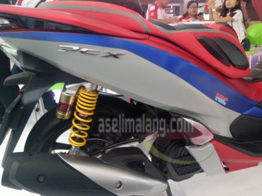 Apalagi ya? Sudah itu saja. Lainnya, masih terpasang semua perangkat orisinal PCX, hingga knalpot. Bahkan, roda berikut ban, juga masih terpasang aslinya. Eh, lupa, sepasang sokbreker model tabung terpisah kelir emas lansiran YSS, menggantikan sokbreker orisinal. Selain redaman yang diklaim lebih nyaman, tampilan juga menunjang. Betul tidak?