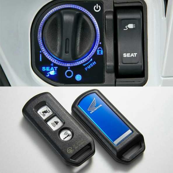 Fitur lain pada PCX Electric ini, antara lain sistem ABS pada pengereman depan, sistem perlampuan total LED, serta adanya aksen biru khas di beberapa bagian yang akan terlihat saat lampu dimatikan. Ada pula hugger belakang yang terpasang di belakang power unit untuk menambah kesan canggih dan sekaligus unik. Panel instrumen pada dasbor nih skutik listrik mampu menampilkan informasi sistem EV dengan jelas. Indikatornya meliputi speedometer, jam, kapasitas baterai yang tersisa, dan status pengisian daya saat tersambung ke daya listrik. Maish juga ditambah dengan terpasangnya sistem Honda Smart Key memungkinkan pengendara membuka kunci utama dengan hanya mendekati sepeda motor. Gak perlu mengeluarkan kunci nih