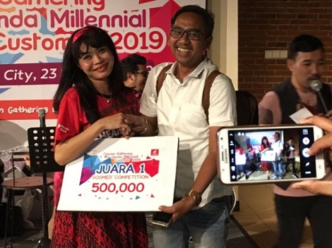 Beragam tingkah kreatif peserta dipadu MC yang super kocak, sukses membuat suasana meriah penuh tawa. Nggak main-main lho, nih permainan bakal dipilih beberapa penampil terbaik dan diganjar hadiah yang lumayan. Cukuplah buat nebus helm fullface baru 😆