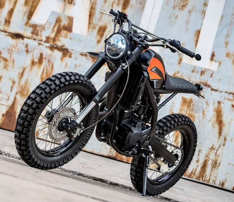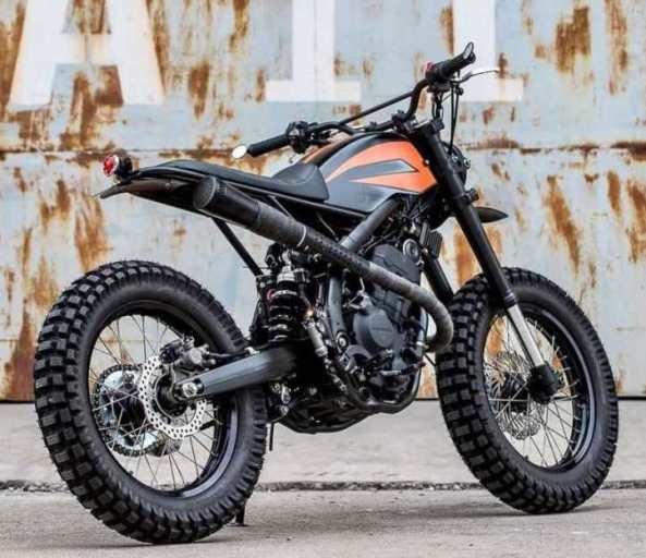 Varian motor trail, alias garuk tanah, memang spesialis punya tampang khas. Jangkung, dan gahar dengan ban kasar khas buat memacul tanah. Modifikasi motor jenis ini, yang paling jamak dijumpai adalah dengan merubah roda menjadi ban aspal alias supermoto, atau menambahkan sidebag sehingga punya tampilan motor petualang.