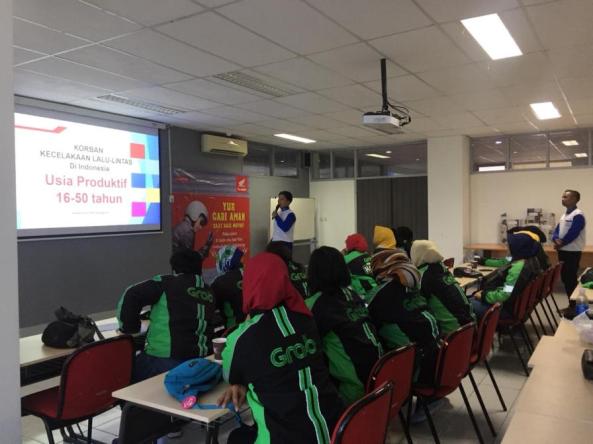 Dengan tema ojek#Cari_Aman Penumpang Nyaman. Pengemudi Grab diajarkan untuk mengetahui pentingnya keselamatan berkendara pada waktu membawa konsumen. Training yang diikuti oleh kurang lebih 50 orang ini, terlebih dahulu diberikan materi mengenai basic skill berkendara dan safety awarenes. Materi yang diberikan antara lain teknik berboncengan yang aman, cara aman membawa konsumen dan barang, postur berkendara juga danger prediction.