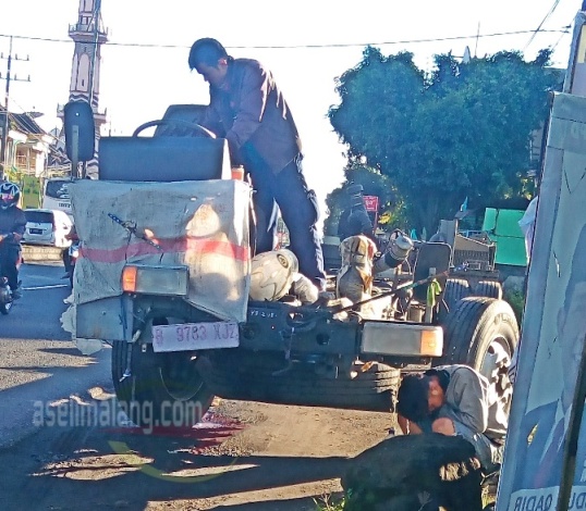 Lagi-lagi bertemu dengan sopir chasis ini di wilayah masuk Malang. Menepi dengan kondisi mesin mati dan lampu hazzard menyala. Ada 3 unit yang beriringan, dan sempat saia lihat, salah satu sopir terdepan tertelungkup di setir.