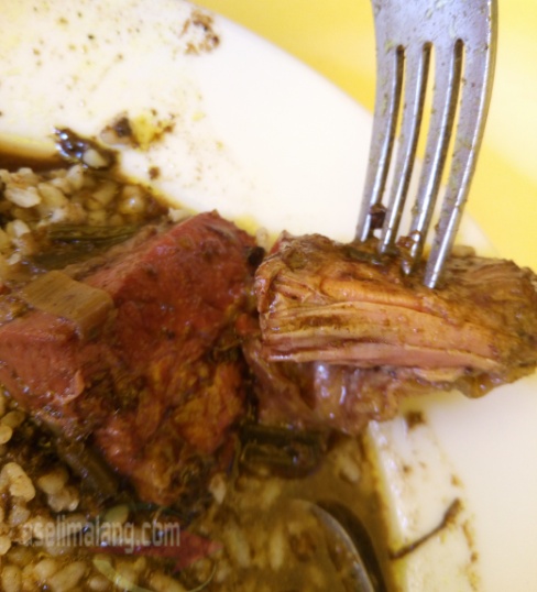 Kalau rawonnya nih, sebagai andalan, saia nilai juara banget. Kuah hitam khasnya, nggak kelewat pekat dan berminyak. Bumbu sedap, dan paling nampol, adalah dagingnya. Bercampur menjadi satu dalam kuah rawon, besar-besar potongannya, dan yang jelas, empuk. Ditambah rasa bumbu gurihnya memang meresap.