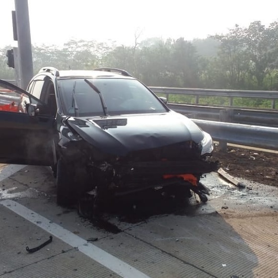 Namun, dibalik semua yang disuguhkan, jangan sampai terlena. Nyaman, kadang membuat orang tak sadar. Demikian pula dengan Mr X, pengendara Subaru ini. Entah karena kurang konsentrasi, fokus atau menikmati tol mulus atau bisa juga meleng, mobil CBU berkelir hitam ini menjadi kasus kecelakaan pertama di tol Mapan.