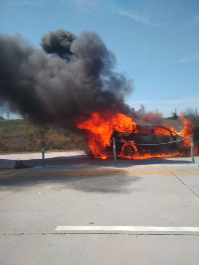 Beruntung, sesaat setelah benturan,, sopir dan penumpang Innova yang terdiri dari 5 penumpang dewasa dan 2 anak-anak, mampu keluar dan menyelamatkan diri. Tak berapa lama, api mulai berkobar dan membakar habis kendaraan MPV ini. Serem yak??