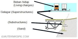 Beban utama, yaitu beban dinamis adalah beban kendaraan yang melintas diatas jembatan. Nah, karena fungsinya itu, maka tidak heran, beberapa waktu belakangan, makin banyak ditemui kasus jembatan yang cepat rusak sebelum perkiraan masa ekonomisnya habis. Lha gimana nggak cepat rusak, wong beban yang dipikul bukan lagi beban dinamis, tapi beban statis?? Iya, karena pengguna jalan makin banyak, ruas jalan tidak mampu menampung jumlah kendaraan yang melintas, walhasil, macet dan penumpukan kendaraan terjadi, termasuk macet diatas jembatan. Belum lagi ditambah yang sengaja berhenti dan parkir di atas jembatan