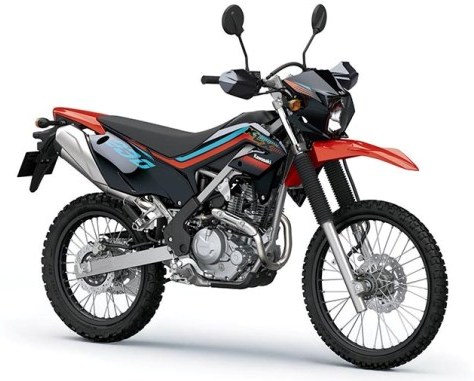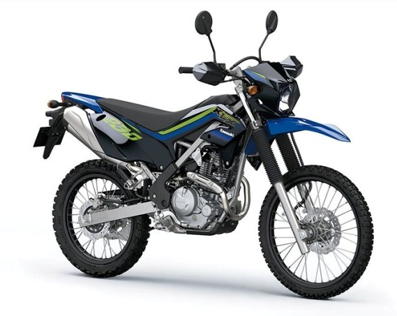 KLX230 SE. Ini merupakan varian yang sudah dilengkapi aksesoris. Punya dua pilihan warna yaitu merah firecracker red dan biru oriental blue. Perangkat yang menempel pada KLX230 SE antara lain pelindung tangan alias handguard, pelindung sasis,  pelindung mesin skid plate dan velg almunium berwarna hitam pada roda depan dan belakang. Harganya, ada diangka IDR 44,9 jutaan