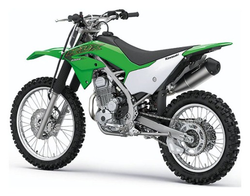 KLX230 R. Ini merupakan spek tertinggi KLX230. Karena, sejatinya KLX230 R diposisikan sebagai motor kompetisi tulen. Punya dimensi lebih ketimbang KLX230 Std dan SE, karena lebih panjang 60 mm, sedikit lebih lebar 5 mm dan juga lebih tinggi 10 mm. Masih ditambah pula dengan ketinggian motor dari tanah alias ground clearance  yang lebih tinggi 35mm dibanding varian lain.