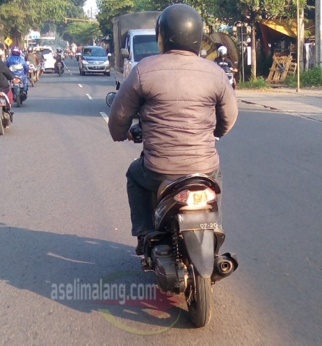 Nah, tempo hari, ketemu pengendara skutik di persimpangan underpass Karanglo Malang. Saat dibelakang skutik Yamaha Mio yang lampu belakangnya sudah diganti model bening alias transparan tersebut, kayaknya ada yang aneh. Bohlam masih warna kuning/putih bawaan pabrik, tapi nyala lampu belakang rada beda meski masih silau