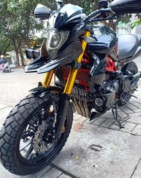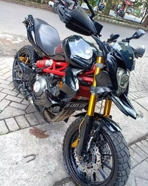 Mengacu gaya custom tracker, yang sedikit tampil lebih “menonjol” dari sebelumnya yang kalem. Paling kentara ubahan di roda. Masih menggunakan velg orisinal bawaan Benelli, ban diganti dengan model enduro. Punya telapak a.k.a kembang/batikan lebih kasar, yang bisa dua alam. Offroad ringan bisa, aspla juga oke. Ban depan 130/70-17 sementara ban belakang pakai ukuran 160/70-17