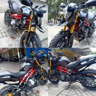 Lampu belakang, sekaligus lampu sein, tinggal tempel produk variasi, yang sudah LED. Lain-lain, terpasang tankpad orisinal Benelli di atas serta sisi kanan-kiri tangki, serta ditambah cover radiator.