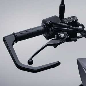 Di setang, ada juga aksesoris end-bar berupa handguard. Barang yang dipasang di ujung setang ini, sejatinya khusus untuk BeAT Street. Mendukung wujud tampilan setangnya yang telanjang, sehingga makin kekar. Tapi, ini barang, bisa juga kok dipasang di BeAT. Nggak masalah, malah bikin kekar. Cukup mahal sepasang benda ini, IDR 275.000. Dan sepertinya, bisa masuk juga nih ke motor sport lain, macam Honda CB150R dan CBR series. Hmm…