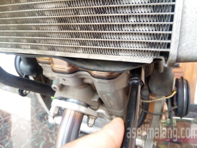 Bila sudah dapat, monggo dibongkar deh. Preteli radiator CB150R. Paling pas, dilakukan sekalian kuras coolant alias cairan radiator, seperti yang saia lakukan tempo hari. Artikelnya disini nih.