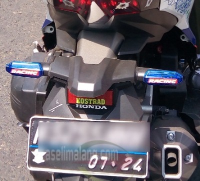 Nah, sepele kan? Pemasangan stiker variasi yang bertujuan mempercantik kendaraan ini, justru menghalangi pancaran sinar lampu sein. Alhasil, kalau nggak dekat banget, atau kondisi gelap malam, bakal tidak terlihat, kalau lampu seinnya sudah menyala. Berabe dan bahaya kan??