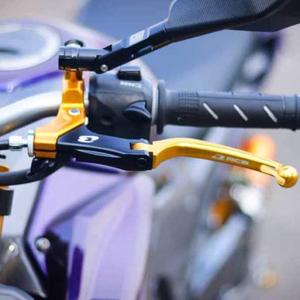 Tuas kopling berikut tuas rem depan, masih ambil produk RCB S1 juga nih, yang adjustable, yang makin nyaman buat tangan pengendara. Lanjut ke belakang, velg yang sudah dibekali cakram, dihentikan kaliper KTC 2 piston. Lha master rem belakang, ganti juga, kali ini limbah CBR250RR yang dipercaya mengantikan master rem NCB.