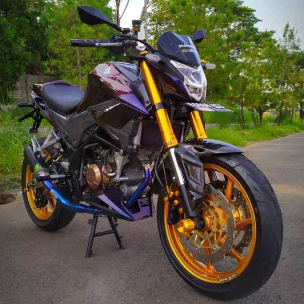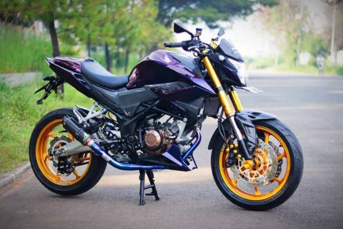 Velgnya sendiri, kombinasi lebar belakang 4 inchi dan depan 2,75inch yang berkelir mencolok, emas a.k.a gold. Velg ini dipasangkan dengan ban ukuran 110/70-17 untuk roda depan dan ban 160/60-17 untuk roda belakang.