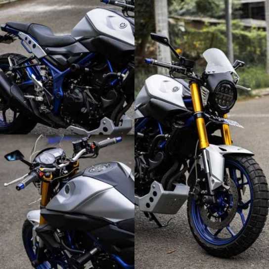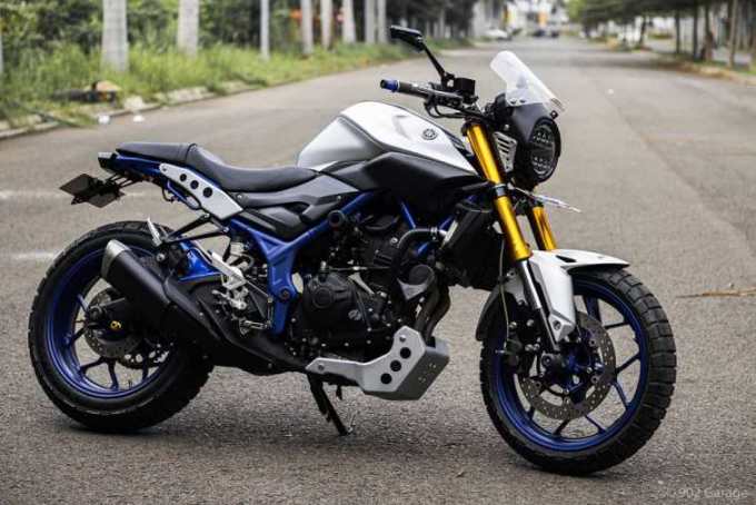 Malah, saking kalemnya nih bodi, sempat banyak yang kecele ketika melihat sekilas nih motor. Dikira motor modifan, atau malah Yamaha Byson nih, hehehehe, terutama untuk MT-25 versi lama berlampu depan tunggal. Baru ketika disalip, deru mesin 2 silinder-nya membedakan, meskipun dengan kondisi standar, bunyi knalpotnya sangat hening, berasa motor 150cc saja. Gegara ini pula, banyak yang gatel memodifikasi nih motor dengan banyak versi. Entah menguatkan naked bike-nya, hingga merubah ke model retro. Salah satunya, garapan 902 Garage, atau dulu dikenal dengan Gado-gado Tapak Lebar. Bengkel spesialis kaki-kaki ini, menggarap MT-25 menjadi ala-ala XSR250. Motor retro modern nih..