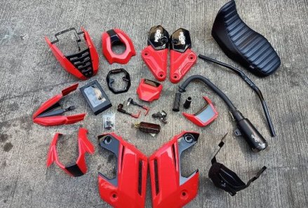 Seperangkat bodyset Grom, sudah disediakan oleh K-Speed. Mulai lampu depan, cover tangki, sepatbor, jok, body belakang, cover mesin hingga knalpot. Komplit dan lengkap