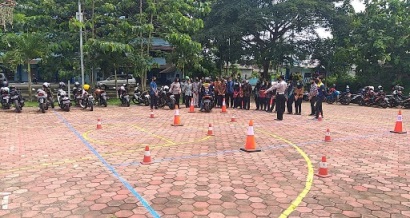 Sebagai antisipasi kebosanan peserta, karena dari tadi hanya disajikan materi teori saja, Yamaha Jatim sebagai panitia, menyisipkan sesi praktek berkendara berupa simulasi ujian SIM yang awalnya dicontohkan oleh petugas dari tim DRC Polres Malang.