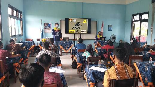 Acara sosialisasi dibuka dengan memberikan materi edukasi peraturan lalu lintas oleh Tulis Dityasa selaku perwakilan dari Polres Malang. Agenda teori ini, antara lain menjelaskan arti rambu-rambu lalu lintas, marka jalan, hal-hal yang boleh dan tidak boleh dilakukan selama dan saat berkendara, serta perlengkapan safety apa saja yang wajib digunakan ketika hendak mengendarai sepeda motor. “Jadi kami buat pemahaman teori terlebih dahulu supaya siswa siswi paham akan rambu-rambu lalu lintas dan peraturan yang dibuat demi keamanan bersama para pengguna jalan” kata Tulis.