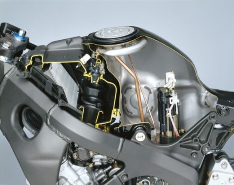 Tangki gambot, namun dibuat lebih rendah sehingga pengendara punya area luas buat menunduk. Ini motor sport masbro..so, jelas racy posisi berkendaranya. Selain lebih luas untuk berposisi menunduk, area pandang ke depan juga lebih maksimal, sehingga lebih leluasa dan aman.