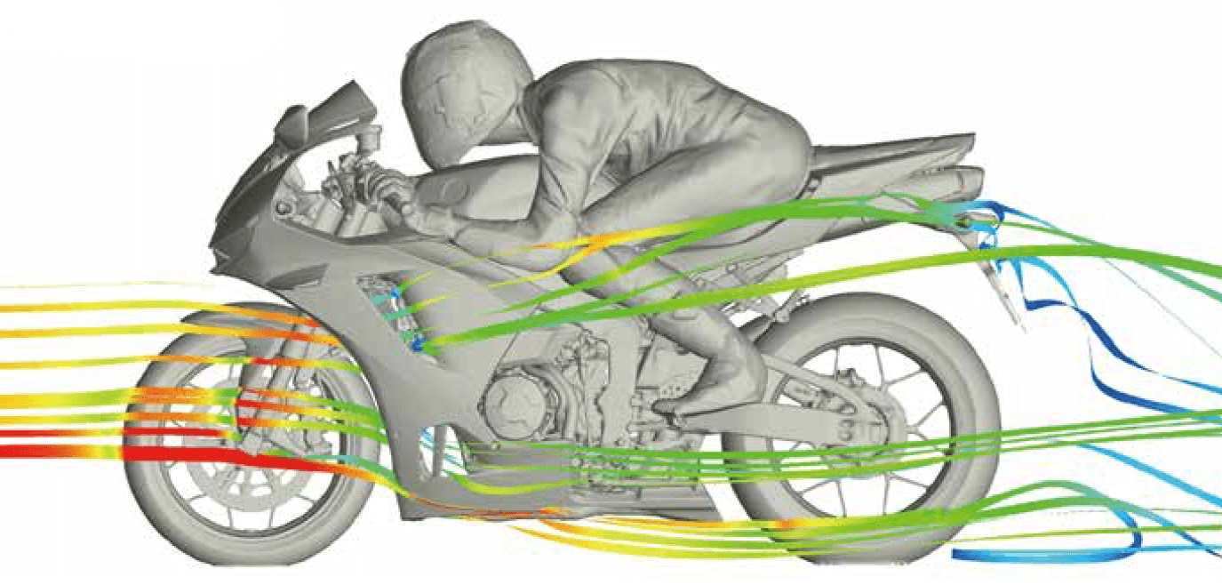 Sporty beneran, serta aerodinamis. Mukanya bengis dan agresif, yang meruncing sehingga meminimalkan menabrak hambatan angin, istilahnya area frontalnya sangat minim. Laiknya kuda pacu di sirkuit, winglet pun diaplikasi pada nih motor untuk menambah aerodinamikanya, termasuk dengan adanya lubang udara pada moncong fairing depan, yaitu diantara sepasang mata bola, eh, lampu depan. Lubang udara ini bukan sekedar pemanis, namun tersambung dengan air intake yang memasok udara ke mesin. Tahu sendiri, mesin kalau nggak ada pasokan udara, nggak bakal hidup kan??