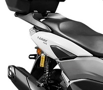 Yang ini disediakan buat yang pingin nambah kapasitas barang bawaan, yaitu box belakang, alias top box dan bracket belakang. Box-nya sendiri punya kapasitas 30 liter, yang fisiknya pas, nggak kekecilan buat fisik NMAX yang memang bongsor. Sedangkan bracket berbahan logam kuat yang sesuai dengan standard spesifikasi Yamaha Genuine Accessory dengan finishing kelir matte black. Box belakang dijual IDR 980.000 sedangkan dudukan braketnya, dilepas dengan harga IDR 925.000.