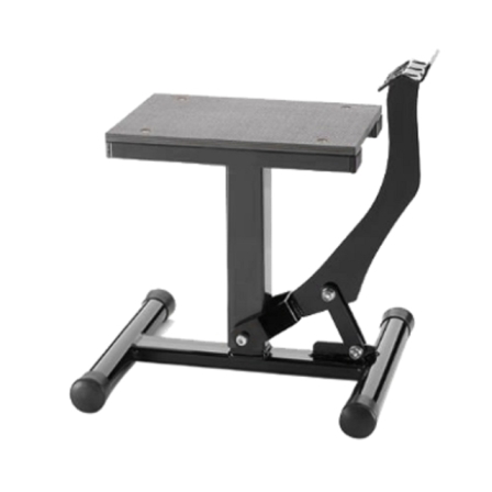 Piranti lain adalah aksesoris main stand alias penyangga motor, yang fungsinya semacam standar tengah. Nih motor emang nggak punya standar tengah, karena lazimnya motor pacuan dna motor garuk tanah, benda ini nggak akan dijumpai terpasang pada motor karena beresiko nyangkut saat dipakai trabas. Adanya main stand ini, memudahkan saat hendak mencuci motor, atau melakukan perawatan lain pada mesin karena motor bisa tegak.