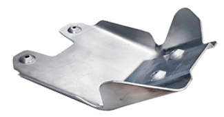 Lanjut ke yang dinamakan alumunium skid plate. Benda ini adalah pelindung mesin bagian bawah dari benturan dengan tanah keras atau bebatuan. Bahannya alumunium keras, berbentuk lembaran dengan lekukan yang pas dengan sisi mesin bawah WR155R.