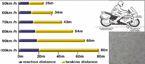 Lha kalau dihitung, sampai jarak berapa meter nih motor berhenti semenjak direm, jawabannya tergantung pada kecepatan motor, spesifikasi rem dan si pengendara. Namun, ada informasi patokan nih, dari divisi safety riding Honda, tentang jarak pengereman dengan beberapa rentang kecepatan. Simak ilustrasinya berikut ini