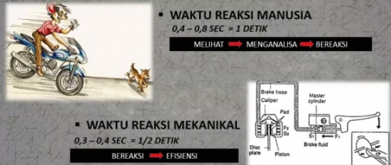 Jadi, bila ditotal, waktu yang diperlukan saat pengendara mengerem hingga rem mulai bekerja sekitar 1,5 detik hingga 2 detik dalam kondisi normal.
