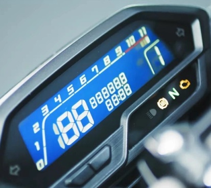 Tampilan garang didepan dipadu setang lebar yang juga tinggi. Pastinya bikin nyaman saat riding jauh dengan beragam medan nih. Sementara panel indikator, juga masih sama dengan Hornet, sepenuhnya digital