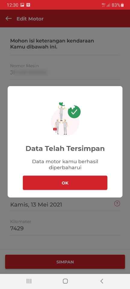 Lebih asyik lagi, kalau dilengkapi, yaitu dengan menambahkan masa berlaku STNK. Silakan, memasukkan tanggal, bulan dan tahun STNK berlaku. Setelah itu, klik simpan. Apabila sukses tersimpan, bakal ada notifikasi dari Brompit.