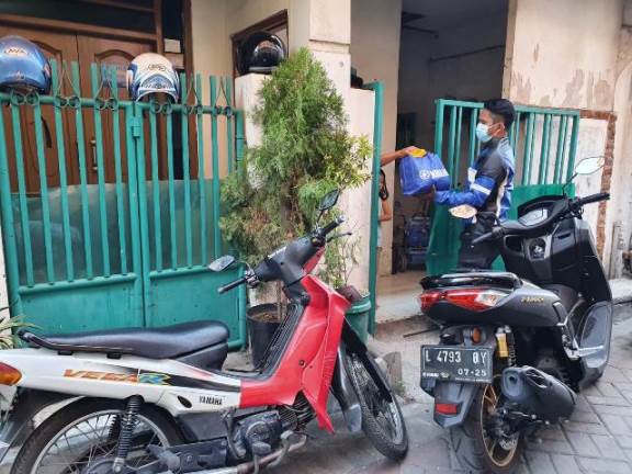 Pembagian Paket Sehat Isoman dimulai pukul 07.00 WIB hingga 10.00 WIB. Setiap tim peduli isoman sudah dicek kesehatannya dan dites swab demi mencegah terjadinya penularan. Dan asyiknya, moda pengantaran paket isoman ini, juga menggunakan motor yang disediakan Yamaha Jatim spesial untuk tim peduli isoman.