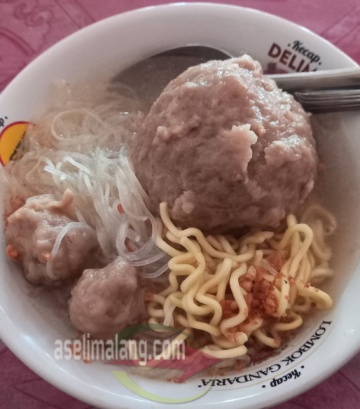 Nah, tempo hari, pas kelaparan saat lewat sekitar area Jl. MT Haryono, atau lebih akrab disebut Dinoyo, ketemu papan macam banner stan bakso. Kelir mencolok, kuning yang menyebut menyediakan bakso dengan harga super
