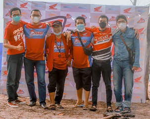Sekitar pukul 09.00 WIB, dilangsungkan juga acara bakti sosial ringan pada pengelola pesisir berupa tempat sampah yang diserahkan langsung oleh kami, dan perwakilan dari MPM Honda Jatim. Beres baksos, tinggal acara penutup yaitu masuk jalur offroad lagi untuk bisa pulang. Weh..jian mantul ultah kali ini, meski sayang, saia gak bisa join, hiksss